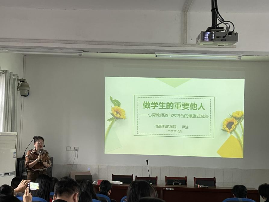 10月17日,为扎实推进衡南县中小学心理咨询室建设及“家校共育”工作,教育科学学院副教授、硕士生导师尹洁受邀参加衡南县中小学教师心理健康教育培训班,为78名骨干教师授课。