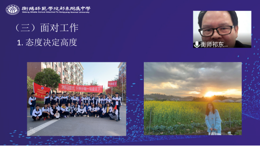 2022 年3月31日晚,数学与统计学院特邀衡阳太阳成集团tyc122cc入口祁东附属中学的周迪云副校长在腾讯会议平台以 《树立现代教师意识,坚守立德树人使命》为主题开展第七场教育研习讲座,以进一步提升2018级师范生的教育管理能力。我院副院长李浏兰主持了本次活动,2018级数学与应用数学专业全体学生(包括南岳学院2018级数学与应用数学专业学生和数学教育研究生)积极参会。