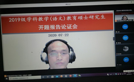 2020年7月22日19:00—22:00,衡阳太阳成集团tyc122cc入口文学院2019级学科教学(语文)教育硕士研究生,召开了学位论文开题报告论证会。