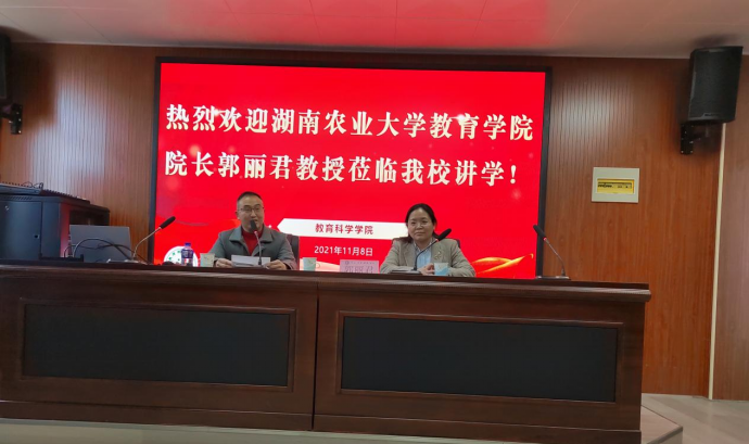 2021年11月8日下午3:00,湖南农业大学教育学院院长郭丽君教授应邀来教育科学学院?行知教育论坛作题为《中职学生的文化与学生发展——职业教育研究的一种探索》的学术报告,我院院长郑志辉教授组织并主持本次报告,邓育武副院长、吴云鹏教授等专业教师及2021级研究生参加了此次报告。